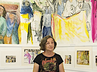 is influenced by two decades of walking and looking in the woods and trails of upstate NY, she has continued to focus on figures in motion in an ongoing series of socially-activist / protest drawings and paintings