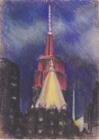 This work from my new “Balcony Series” made it’s debut at the Sideshow Gallery (Williamsburg, Brooklyn) annual group show which closed in March. It’s one of my many small pastels of the Empire State Building and other new (for me) vistas. They are not yet on this website, but If you are on Facebook, you can check out more from this series. Some are included in my Facebook “challenge”.
