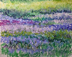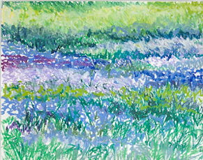 #777. Field of Blues. Oil Stick, 30 x 40”