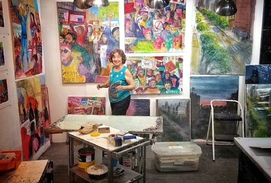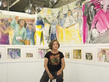 and getting valuable feedback from all. I was able to show my new politically-inspired paintings, my large City paintings and an installation of my Balcony Drawings,