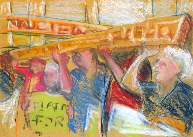 #3SG23. Peace Plank Rally, Pastel on paper, 9 x 12”