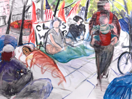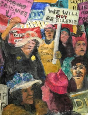 included my At The Woman's March: Dag Plaza #2, 2017 Acrylic on paper, 36 x 24” in the Offramp