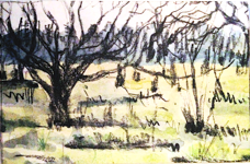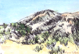 Dorland Mountain, a watercolor/ink drawing